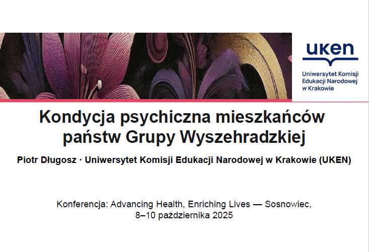 W ramach badań mieszkańców państw Grupy Wyszehradzkiej przeanalizowano także aspekty zdrowia psychicznego. Prezentacja przedstawia poziom kondycji psychicznej uczestników oraz jej zróżnicowanie pomiędzy krajami.