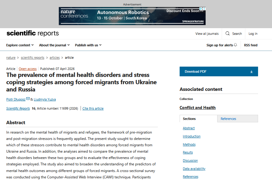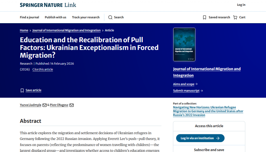 Nowy artykuł w Journal of International Migration and... Miło nam poinformować, iż badaczka Laboratorium Liudmyla Yuzva i Piotr Długosz opublikowali tekst pod tytułem:...